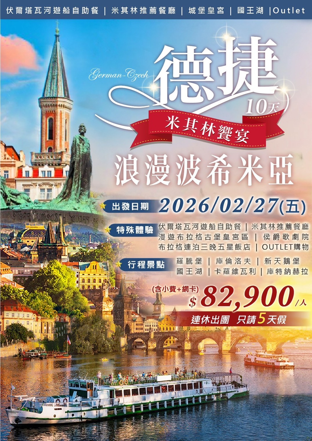 鼎陞旅遊-五星童話德捷10天-米其林饗宴