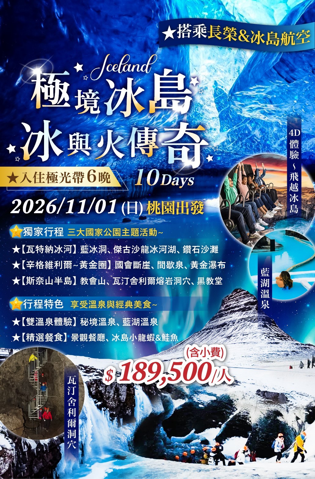 長榮&冰島航空~獨家行程~三大國家公園主題活動~享受溫泉與經典美食~