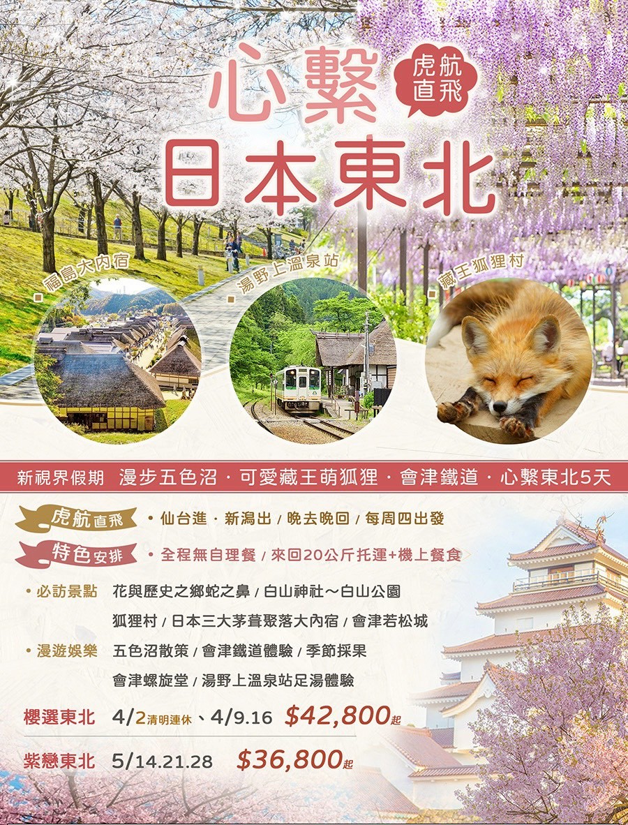 仙台進~新瀉出~晚去晚回~每周四出發~無自理餐