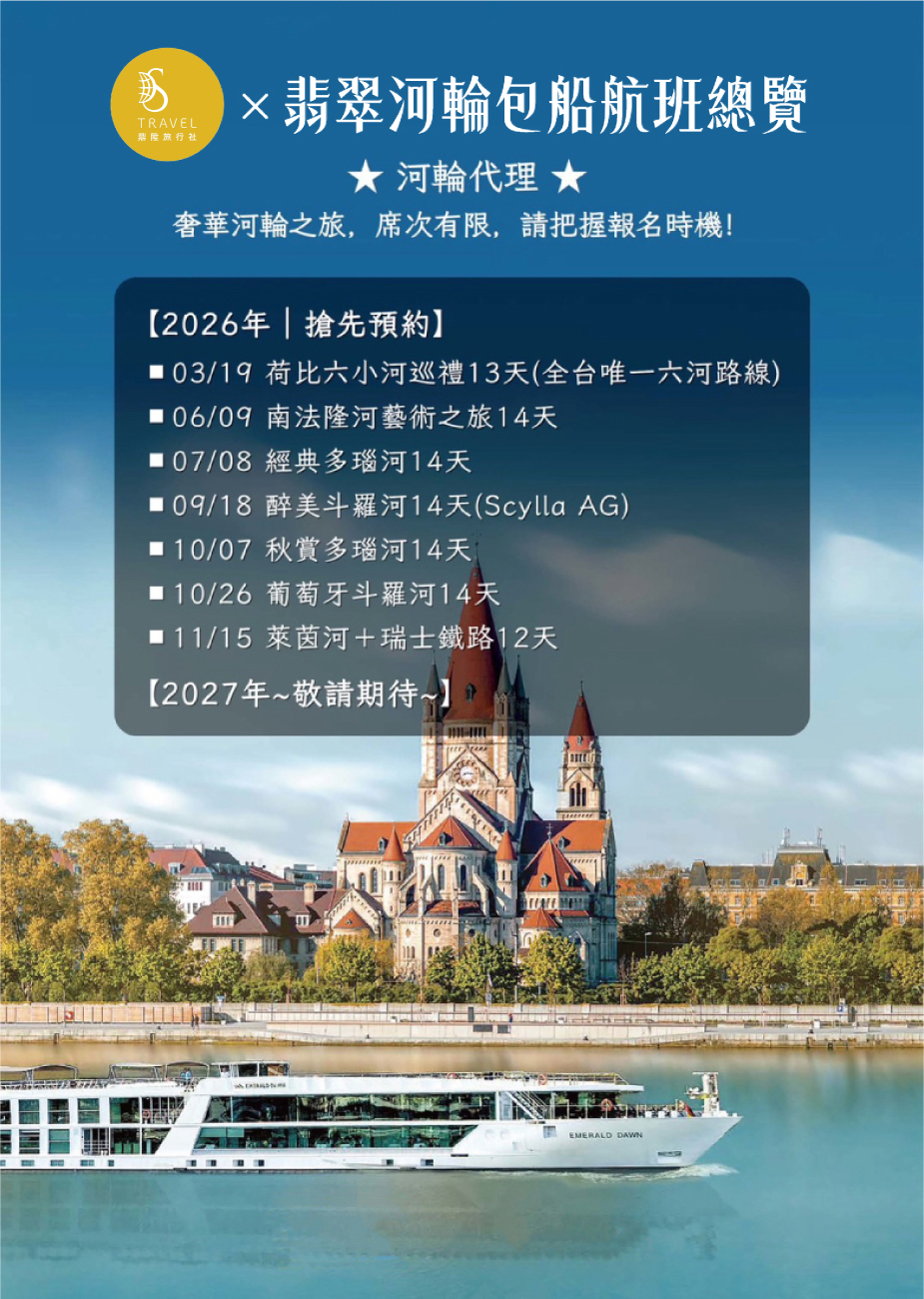 奢華河輪之旅,席次有限~請把握報名時機!